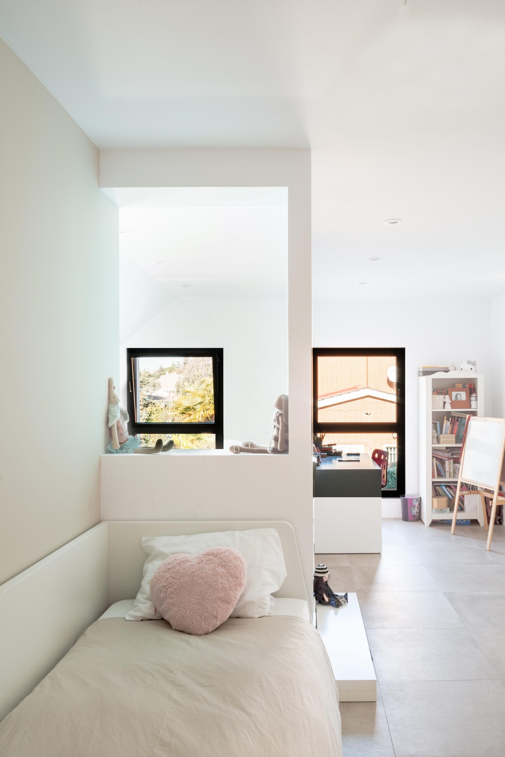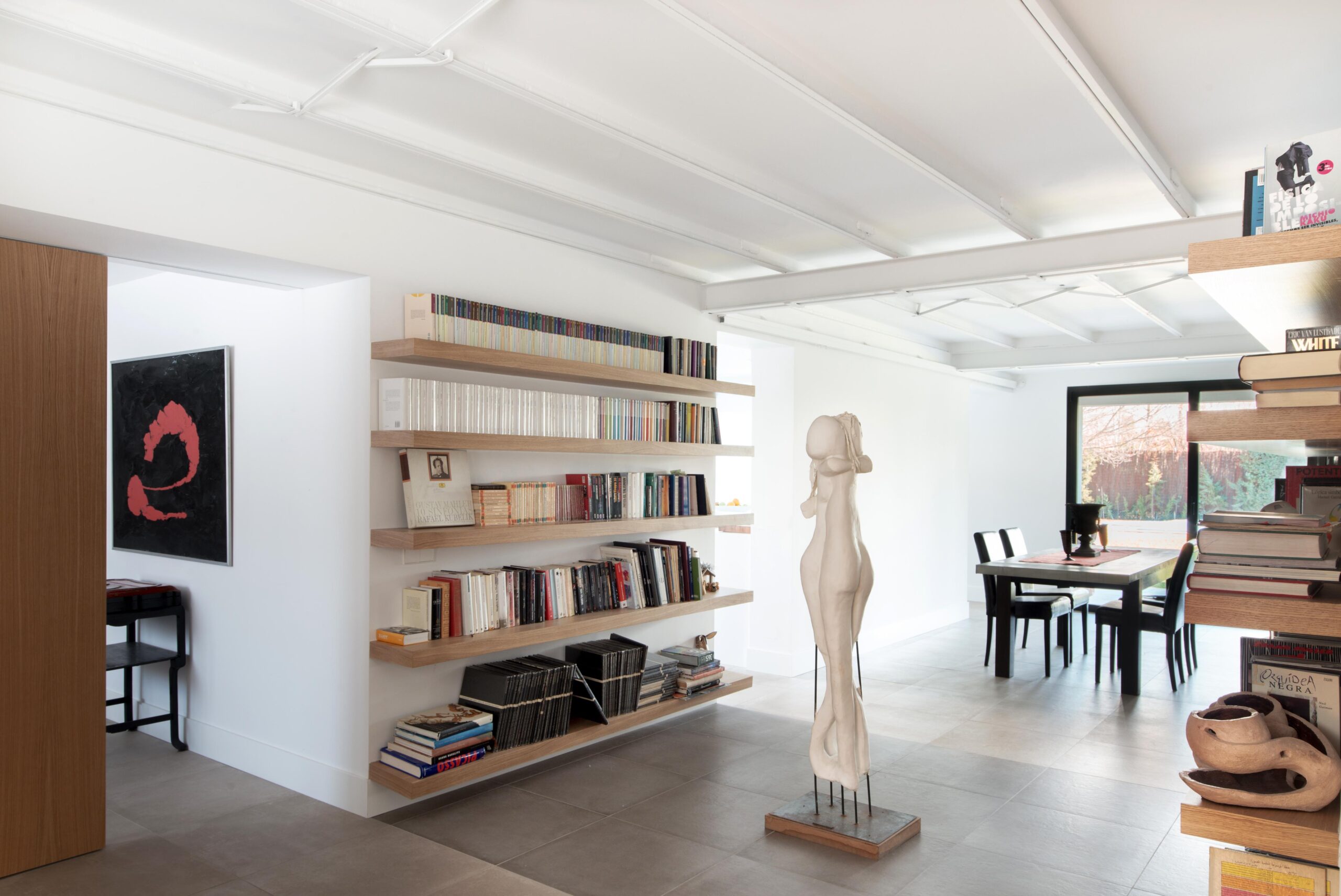 Los propietarios, por el contrario, buscan espacios luminosos, abiertos y comunicados entre sí con circulaciones fluidas. El reto era empezar de cero, literalmente, y pensar una casa nueva dentro de un contenedor prefabricado con una estética muy potente.
