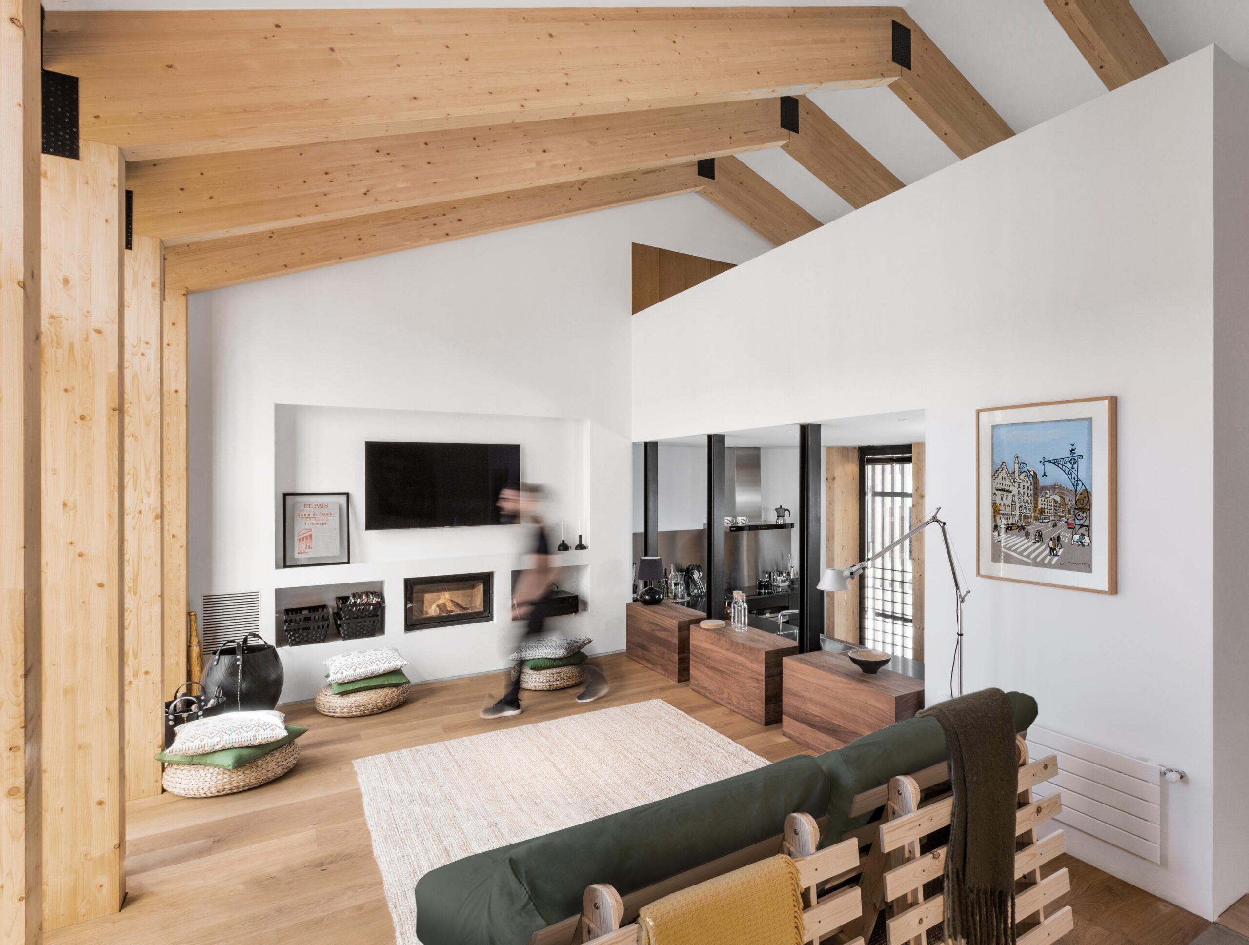 La percepción de la vivienda cambia por completo, en su recorrido, gracias al uso del mobiliario, un juego sugerente entre qué se ve y qué no desde cada estancia. Nunca se pierde, sin embargo, la sensación de espacio abierto, no sólo en el interior, sino también hacia el exterior.