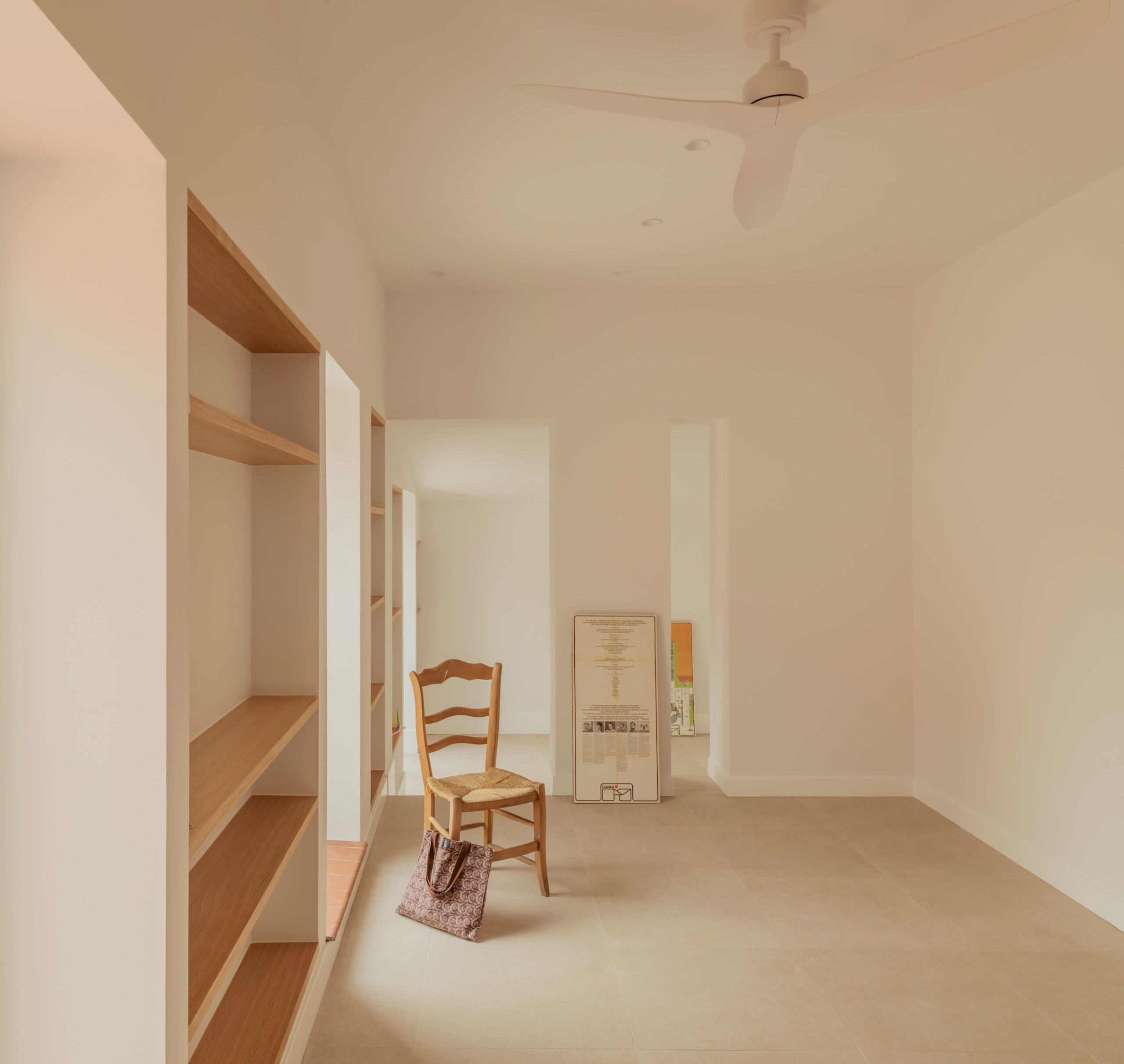 El barro, la cerámica clara combinada con la madera de roble, los colores terrosos y rojizos, generan la percepción de amplitud.