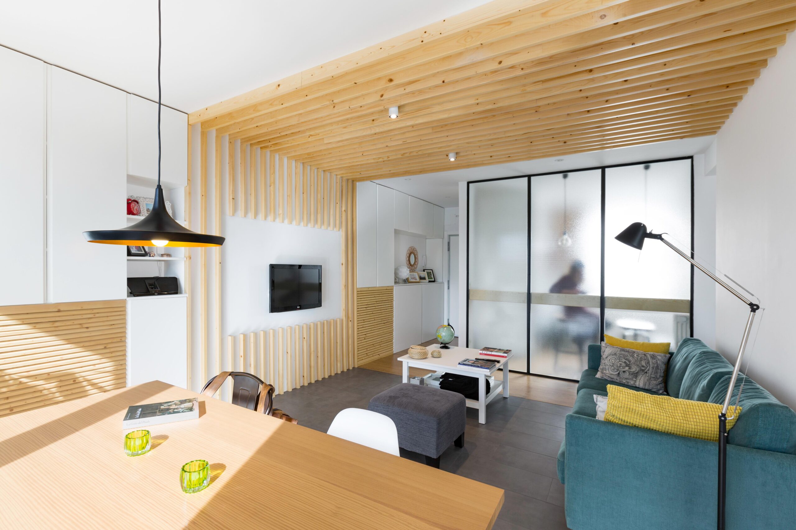 Una pareja joven adquiere una vivienda apostando por las posibilidades que les puede ofrecer su reforma con un presupuesto ajustado. En este proyecto se zonifican claramente los usos, a pesar de estar visualmente comunicados entre sí, buscando la fluidez del espacio.