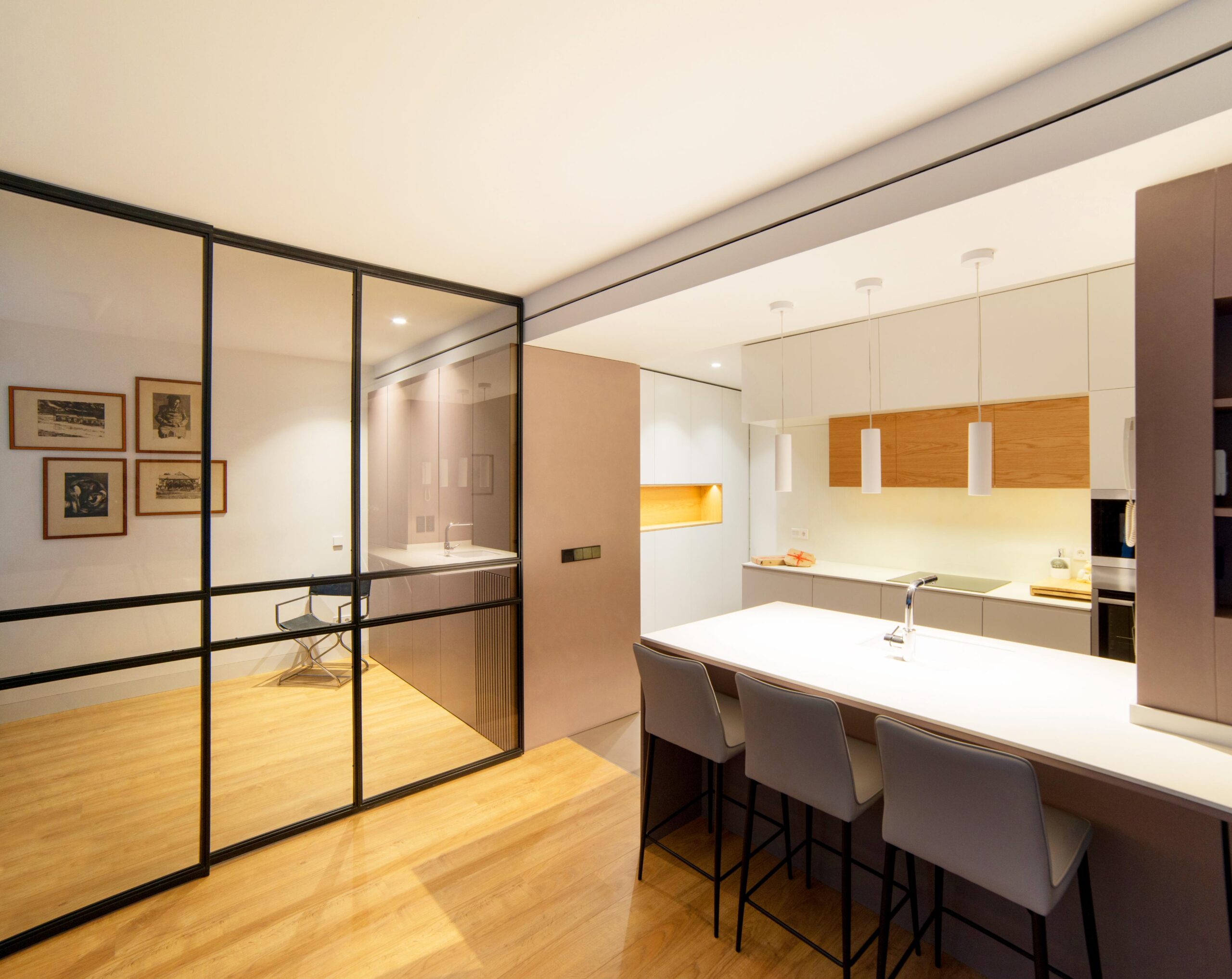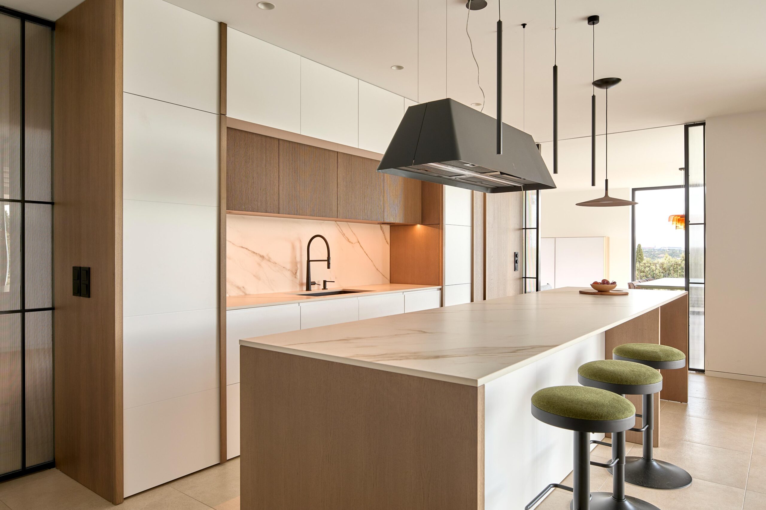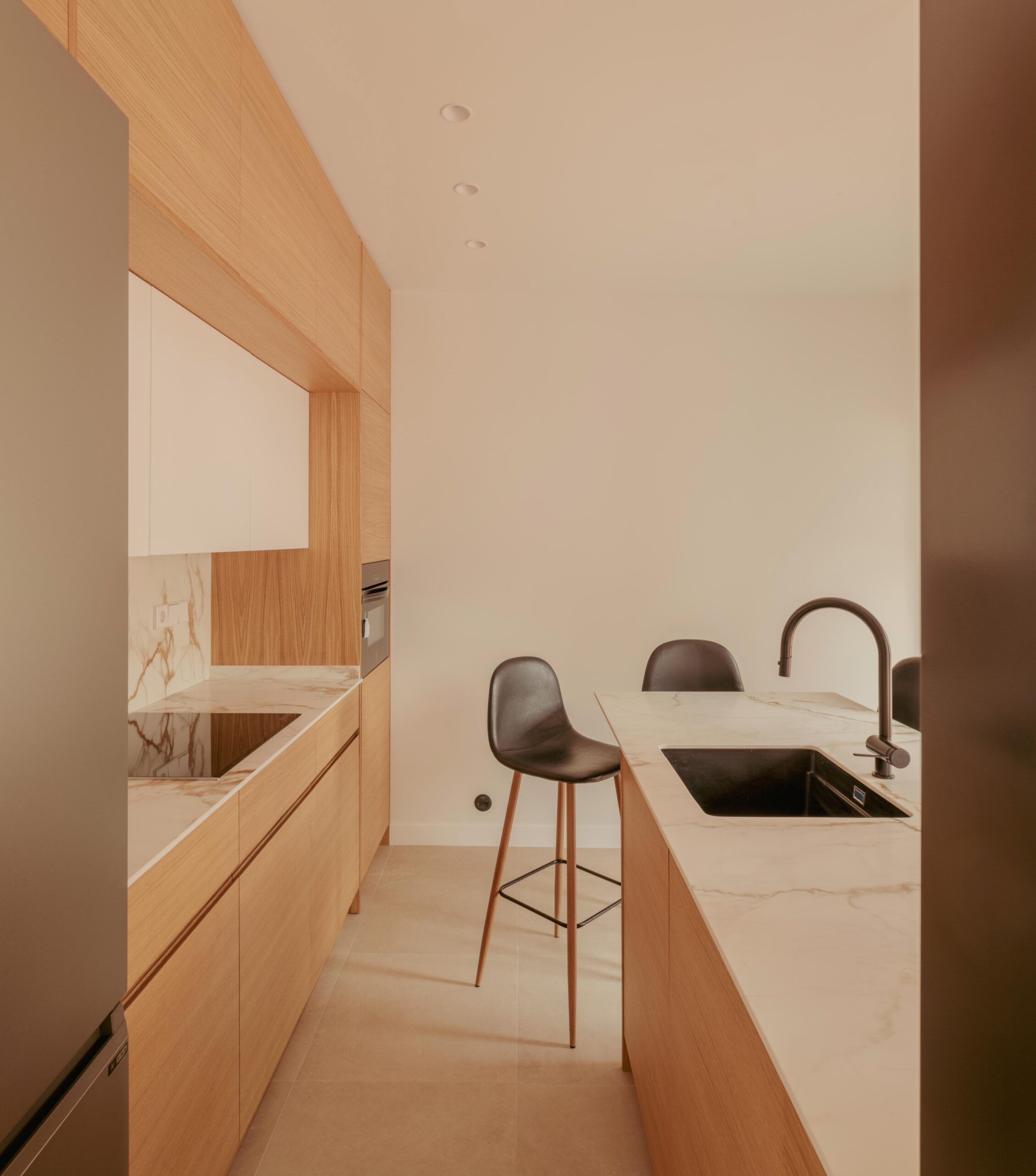 La cocina concentra función, técnica, ergonomía, materialidad, iluminación y tecnología en un espacio de alta exigencia. Cada decisión afecta al conjunto. Por eso la abordamos desde la lógica constructiva, la proporción y la coherencia con el proyecto interior global.